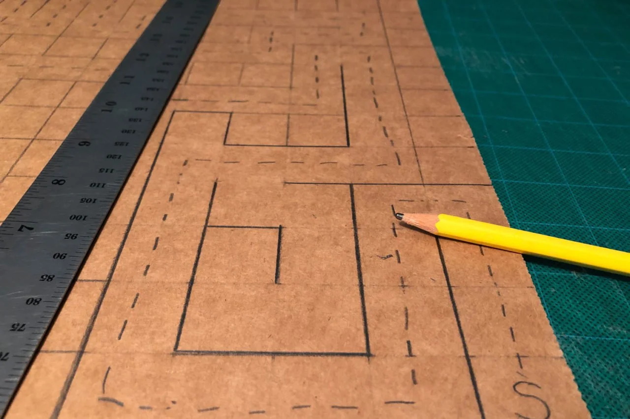 Using this measurement, lightly draw guidelines on your cardboard base. These lines will help you position the walls of the maze. Will your maze be a grid? A spiral?